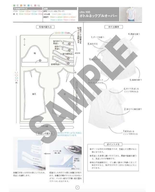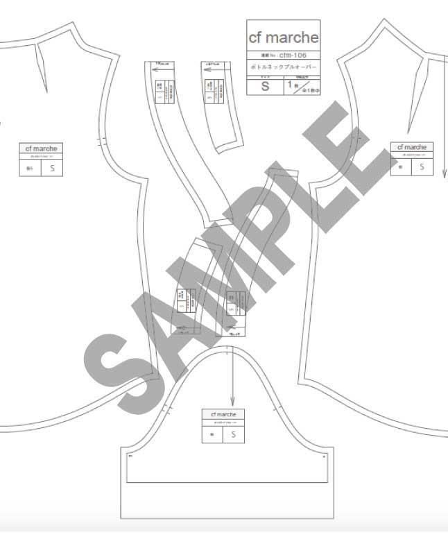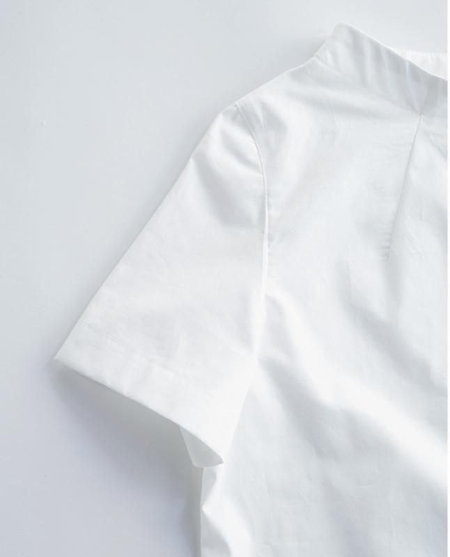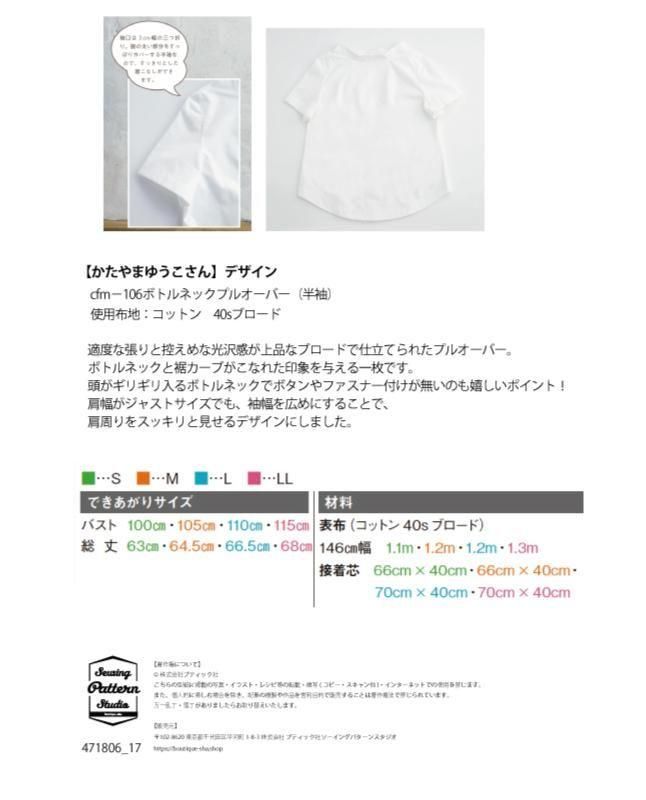 【型紙】ボトルネックプルオーバー(半袖) designed by Yuko Katayama(KY-0006)適度な張りと控えめな光沢感が上品なブロードで仕立てられたプルオーバー