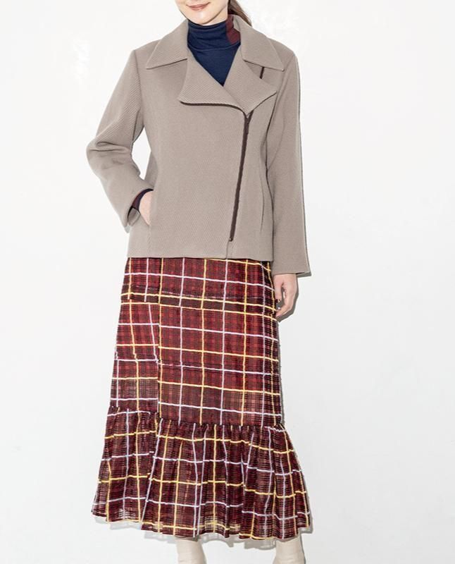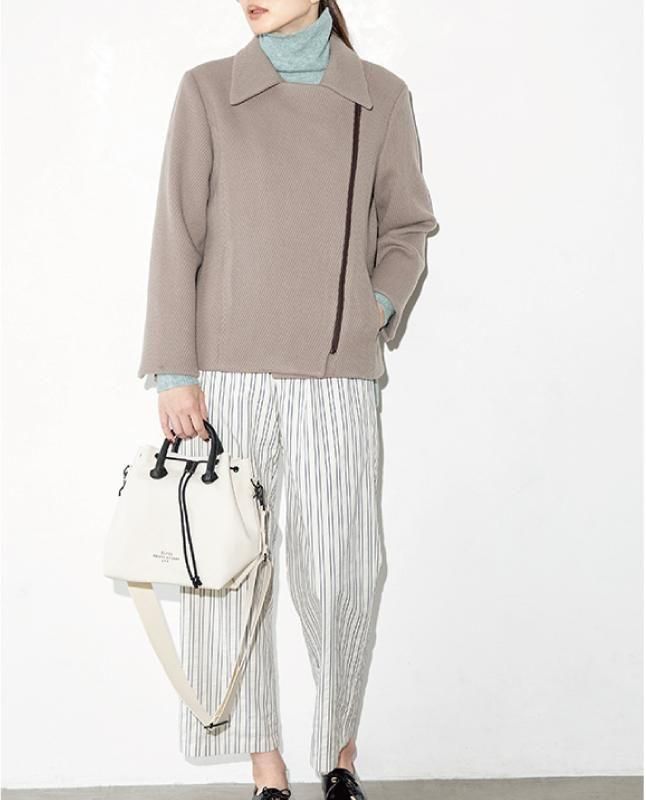 ニュアンスカラーのウールで作ればハード過ぎず女性的な一枚に。