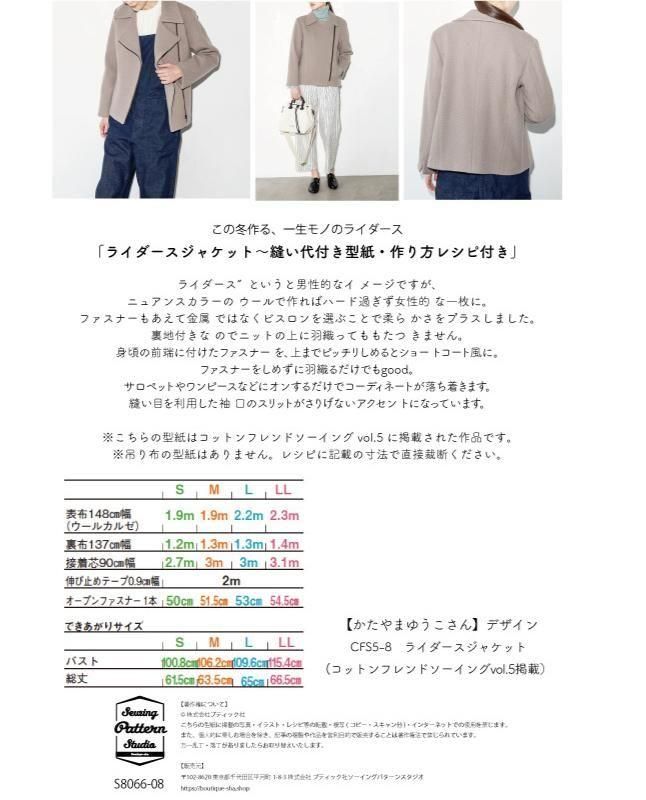 【型紙】ライダースジャケットdesigned by Yuko Katayama(KY-0008)この冬作る、一生モノのライダース